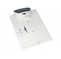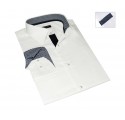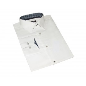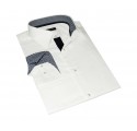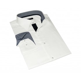 La chemise homme unie blanche proposée avec des finitions poignets et col aux motifs vichy marine et blanc, et l'exemple parfait d'un intemporel moderne.