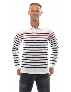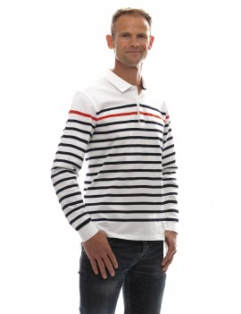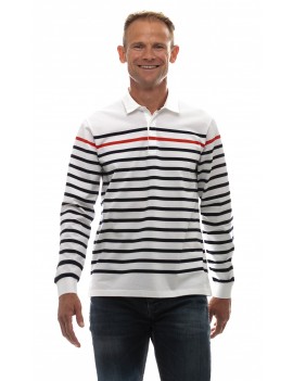 Marinière homme col polo à rayures manches longues. Ce polo marinière fabriqué en jersey coton allie confort et originalité avec sa rayure contrastée rouge. Pièce iconique, cette marinière homme est un incontournable du vestiaire masculin.