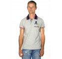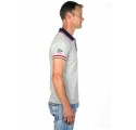 Le polo brodé piqué gris et bleu marine est original grâce à ses touches de couleurs peps sur les manches, le col et les broderies.