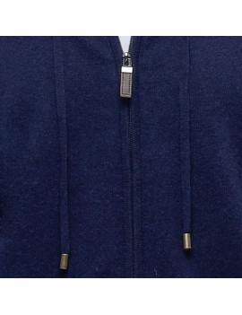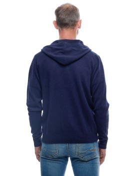 Gilet cachemire homme col zippé bleu marine à capuche