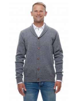 - Cardigan col châle en grosse maille anglaise cachemire 4 fils 7GG - idéal pour l'hiver