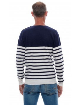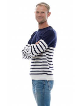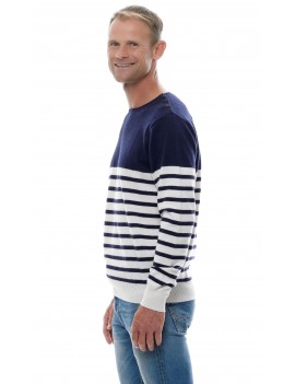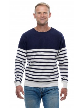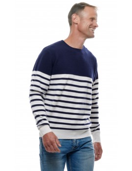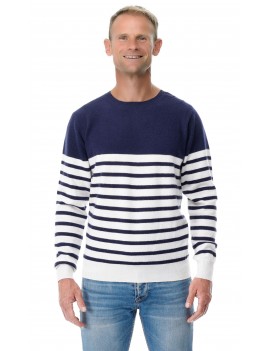 - Pull marinière col rond pour hommes en pur cachemire 2 fils 12GG - idéal pour l'hiver